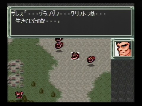 B攻略例 1ターン目 気合をかけて左の市街地に配置。市街地にするメリットは「HP回復」と敵をグラフ・ドローン→レンファ→ゴリアテとテンポよく破壊できることです。反撃命令は「積極的に」にしてください。 別の方法で山岳地に配置するのがあります。こっちは地形効果が防御30%と高いのが魅力です。ただしここに配置するとレンファ、グラフ・ドローンに囲まれてしまい、クリティカルが重なるとちょっとまずいことになるかも・・・。 今回は市街地に配置する方法で進めていきます。