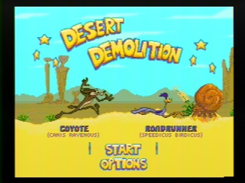 | <<概要>> ルーニートゥーンズのロードランナーvsワイリーコヨーテをゲーム化したもの。 今作の特徴としては、原作そのままの追いかけっこを両方の視点からプレイできることが挙げられます。 具体的にはロードランナーはソニックばりの高速アクションが印象的で、コヨーテの方はオーソドックスなジャンプアクションといった趣きです。 出来も良好で、版権物にありがちな粗悪さは感じられません。 私の好きな「トムとジェリー」もこのような感じでゲーム化してくれると嬉しいのですが・・・。 |